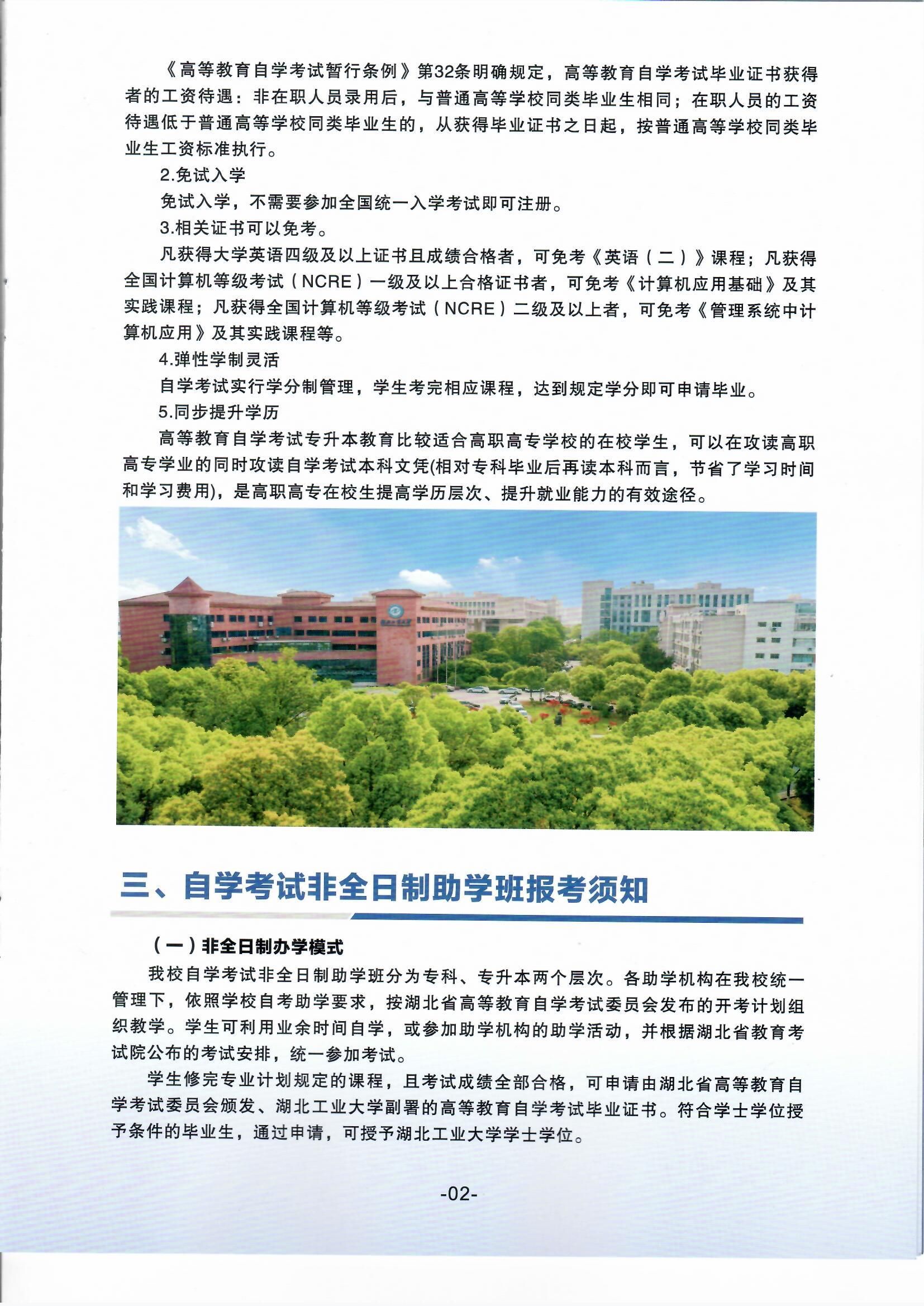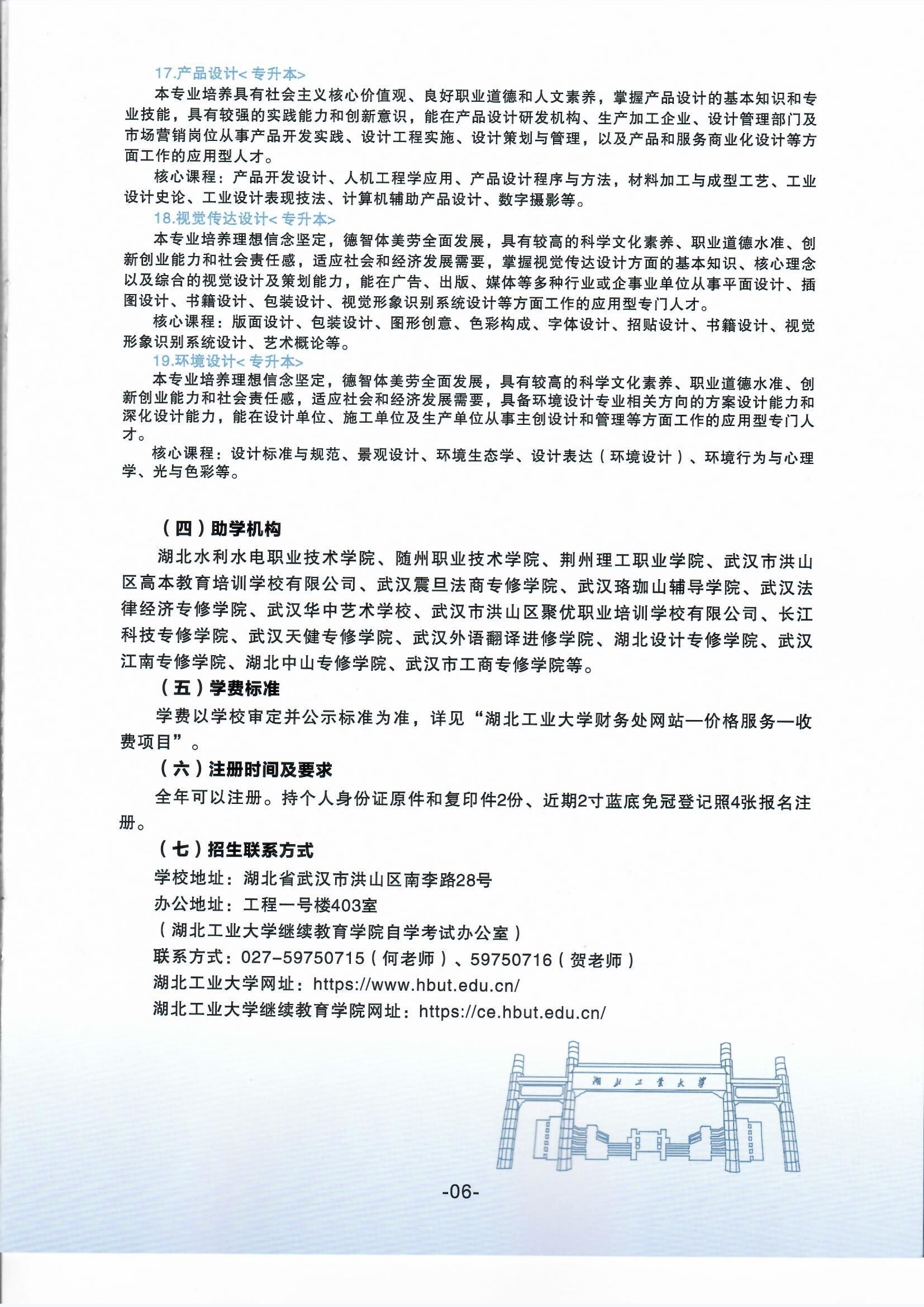 湖北工业大学2024年高等教育自学考试非全日制(专科、专升本)招生简章