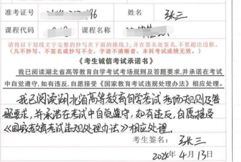 4.规范抄写《考生诚信考试承诺书》。考生应在答题卡指定区域完整抄写《考生诚信考试承诺书》,凡不抄写、不签名或抄写不全、字迹不清晰者,该科考试成绩无效。