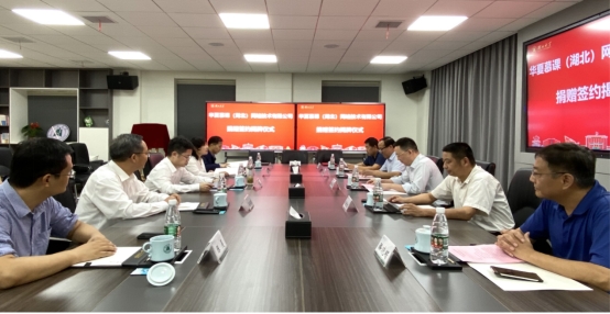 9月26日,华夏慕课(湖北)网络技术有限公司捐赠暨湖北大学继续教育数字化教学实践基地揭牌仪式,在习坎楼“校友之家”多功能室举行。学校党委常委、副校长、教育发展基金会副理事长艾青松、相关职能部门和学院负责人参加。