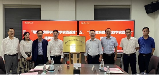 在仪式上,湖北大学教育发展基金会与华夏慕课(湖北)网络技术有限公司总经理郑代斌向学校捐赠100万元并签订捐赠协议书,艾青松为郑代斌颁发校董聘书,并赠送捐赠纪念牌,共同为湖北大学继续教育数字化教学实践基地揭牌。