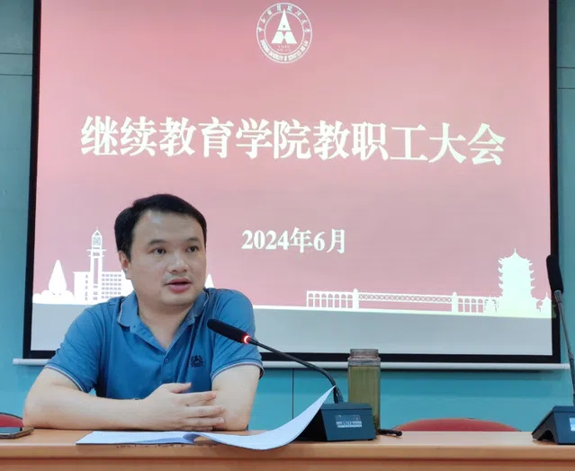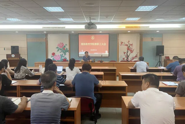 (通讯员 鲁雯 摄影 王磊)6月27日上午在中南楼6楼会议室,继续教育学院迎来了学期末全院教职工大会,会议由院长赵凯主持。