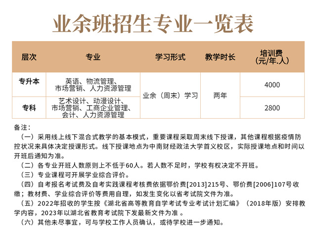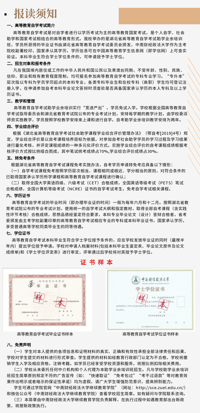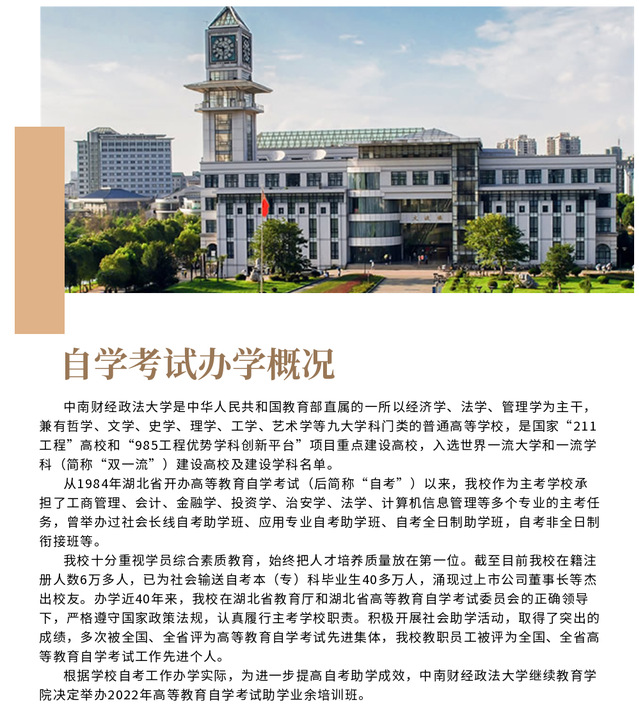 中南财经政法大学2022年高等教育自学考试助学业余培训班招生简章