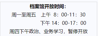 服务时间:工作日上午8:30-12:00;下午14:00-17:15。
